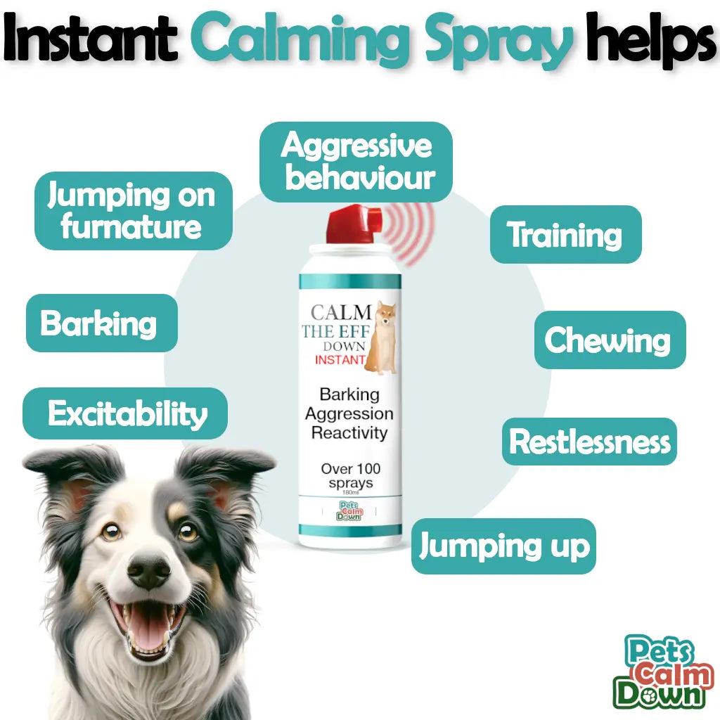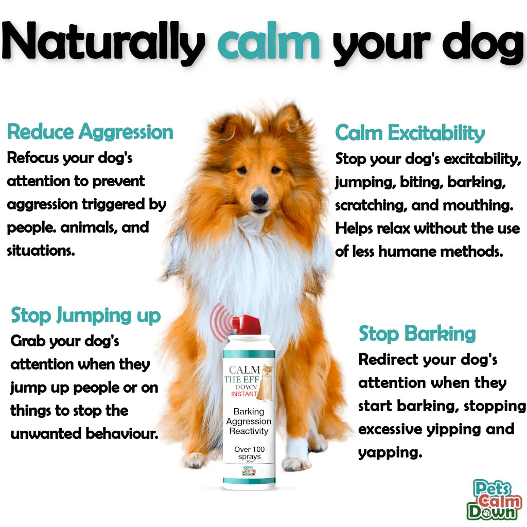 The spray is effective in addressing a variety of dog behaviours, including barking, jumping, stealing food, chasing, aggression, and place avoidance.