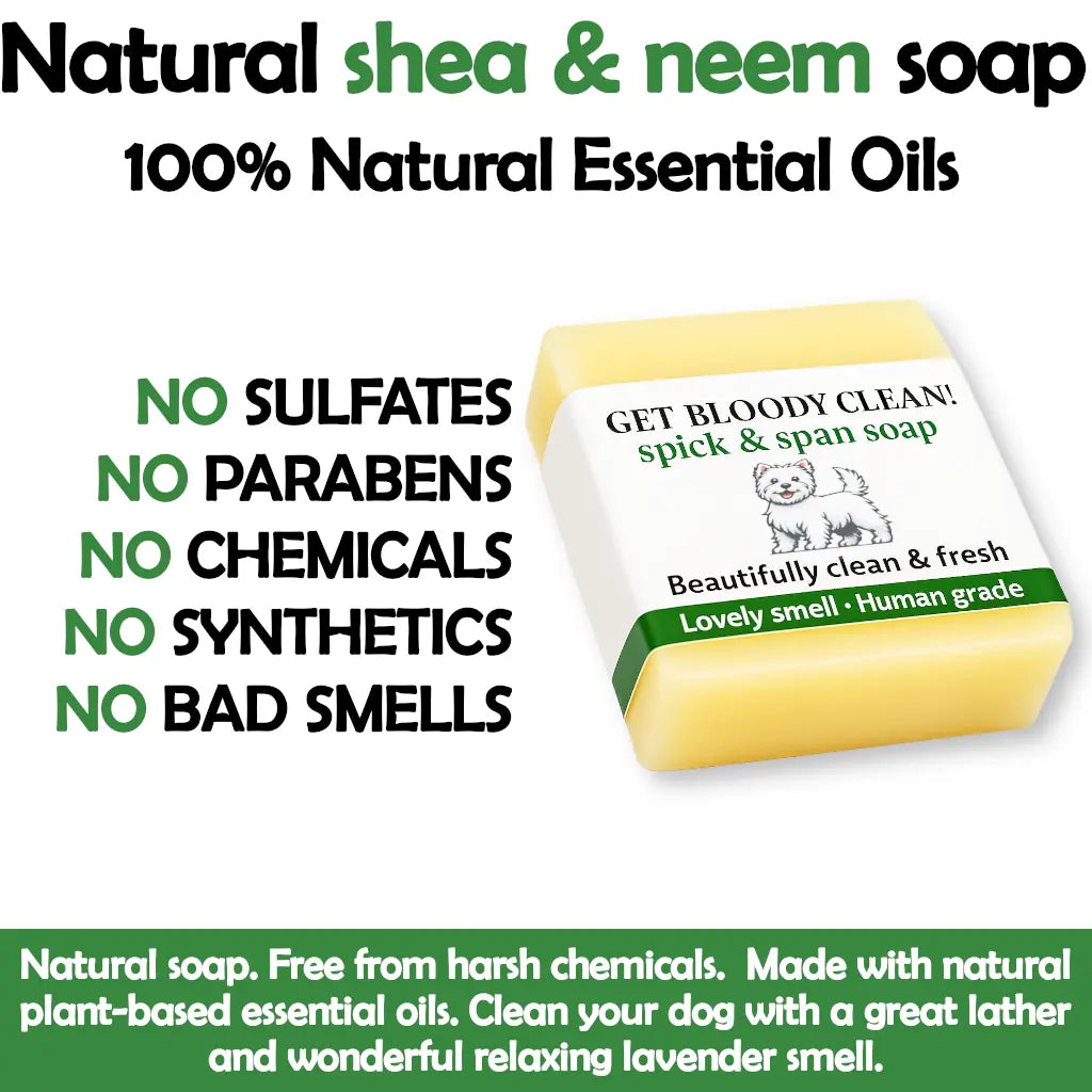 Handmade neem and tea tree shampoo bar, crafted with love in the UK. Gentle, natural, and lavender-scented - perfect for dogs with sensitive skin or allergies.